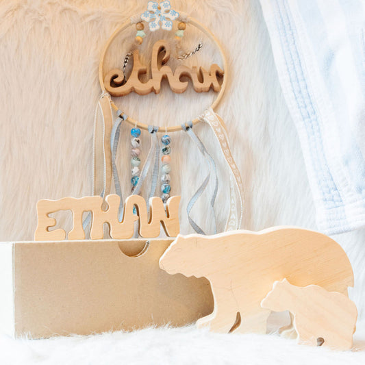Ce cadeau de naissance personnalisé est bien plus qu’un simple élément de décoration : c’est un souvenir durable et élégant qui accompagnera l’enfant dans son univers. L’attrape-rêves est conçu pour apaiser les nuits, tout en apportant une touche personnalisée et chaleureuse à la chambre.